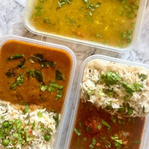 Spiced Okra Fry, Dal Fry, Plain Rice, 2 Plain Paratha (Bread)