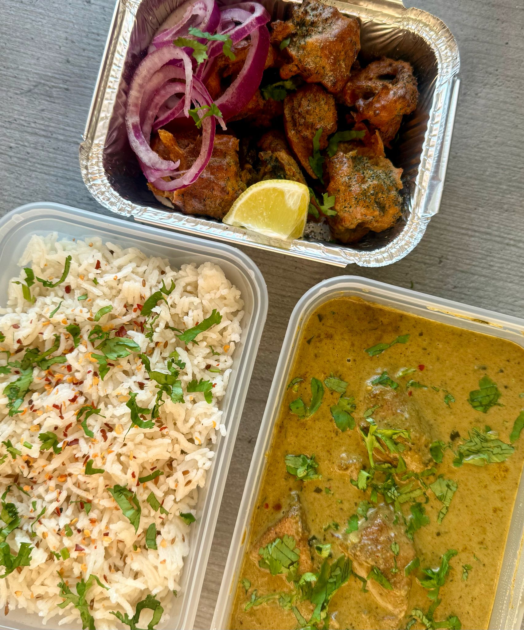 Chicken Bhuna, Dal Fry, Plain Rice, 2 Plain Paratha (Bread)